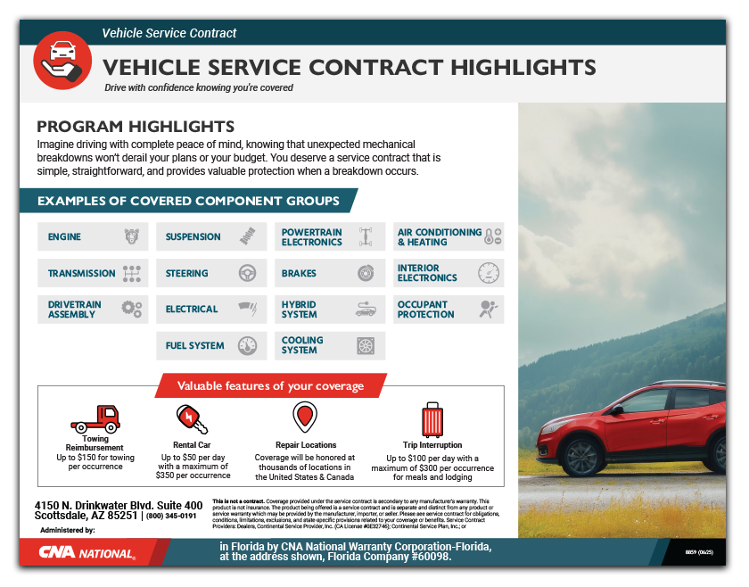 CNA National offers both standard and custom marketing materials for our F&I products designed to simplify and supercharge the way you describe, promote and sell our contracts.